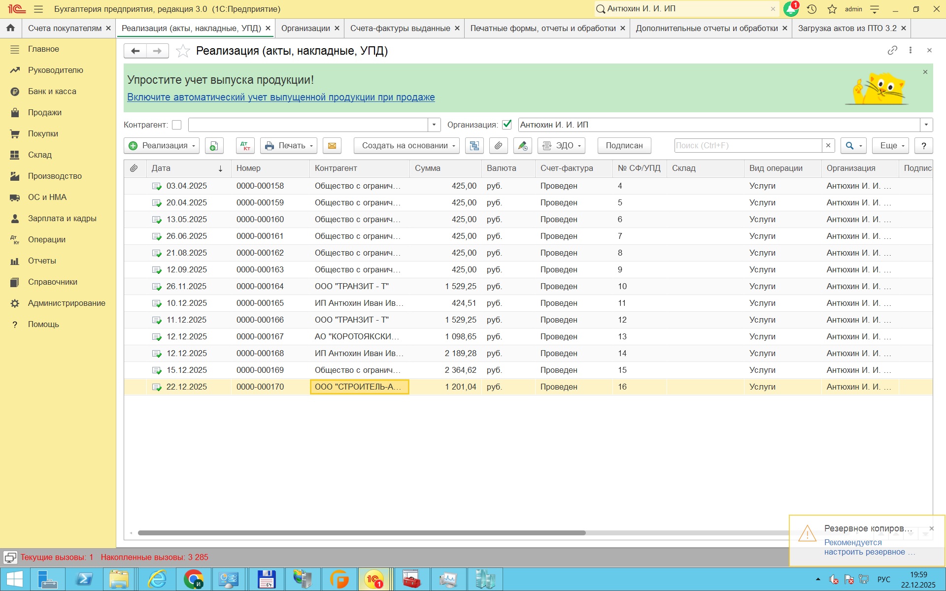 Демонстрация выгрузки диагностических карт юрлиц из программы Пункт технического осмотра в 1С: Бухгалтерию предприятия 3.0 в виде актов выполненных работ (реализаций) [Смотреть] https://rutube.ru/video/3acc813ab197d87224c986734f0ae92d/