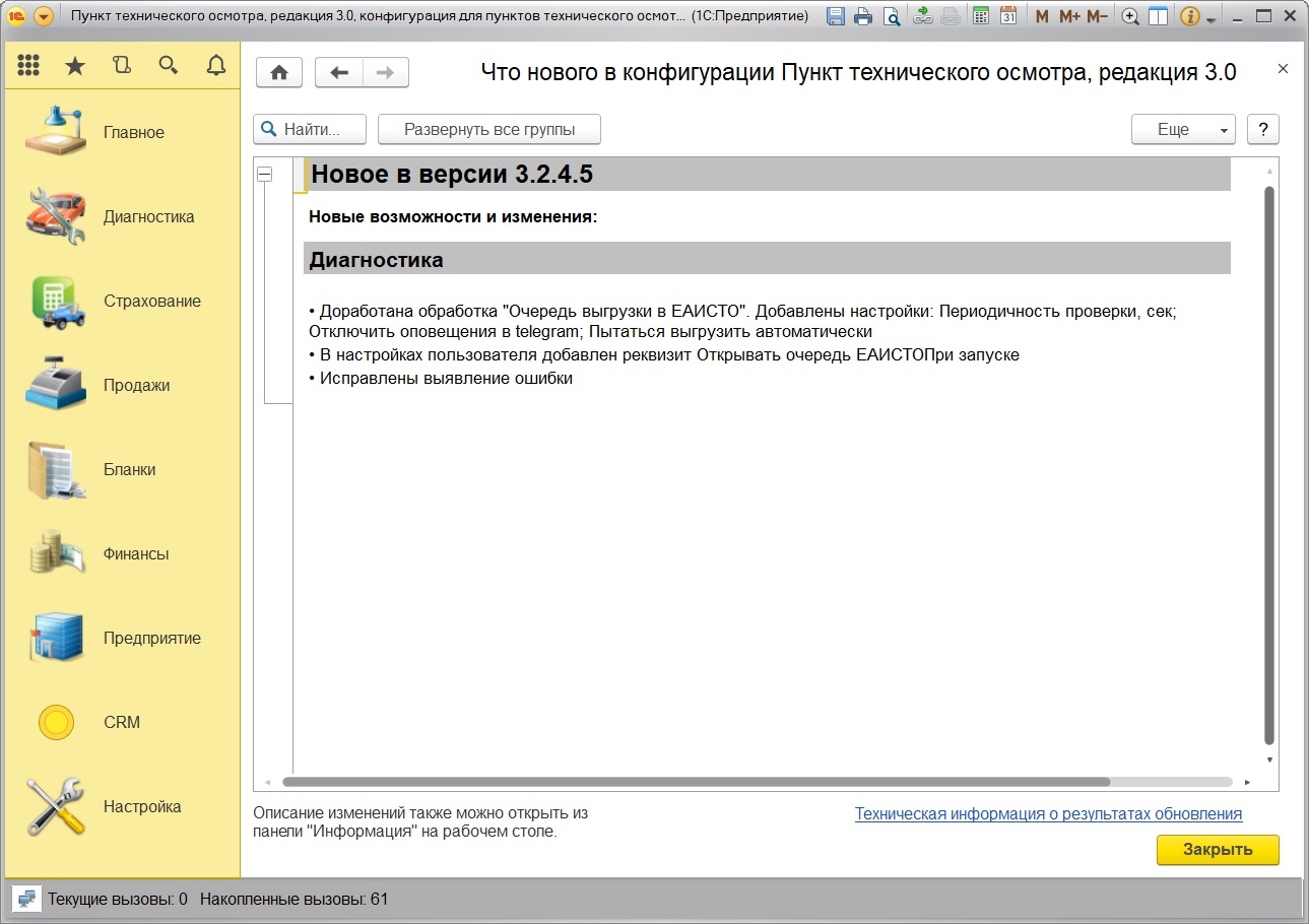 Здравствуйте, сегодня, 30.11.2025 с 15:00 по 18:00 запланированы технические работы в "облачном" сервисе Пункт технического осмотра по обновление версии платформы 1С:Предприятие до актуальной версии. Возможны, перебои. Приносим извинения за неудобства