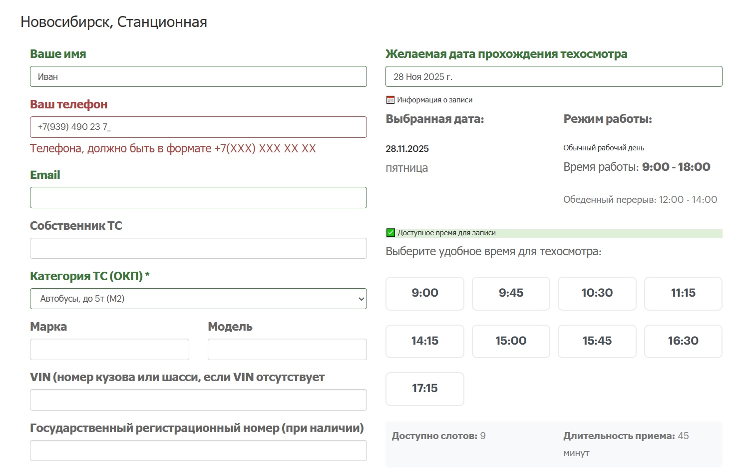 Сайт оператора техосмотра: новая переработанная форма записи на техосмотра